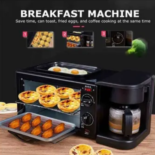 ابدأ يومك بسهولة مع جهاز الإفطار المتكامل 3 في 1 من Saachi، الذي يجمع بين فرن صغير، صانعة قهوة، وصاج للشواء في جهاز واحد عملي وموفر للمساحة. مثالي للمطابخ الصغيرة أو لاستخدامه أثناء السفر أو في المكاتب.