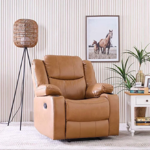 استمتع بالراحة القصوى مع كرسي مارجي الهوائي اليدوي، المصمم من الجلد الفاخر بلونه البني الدافئ، والمزود بميزات ذكية مثل مساحة تخزين مدمجة وحامل أكواب. مثالي للجلوس المريح بعد يوم طويل، سواء في غرفة المعيشة أو زاوية الاسترخاء.